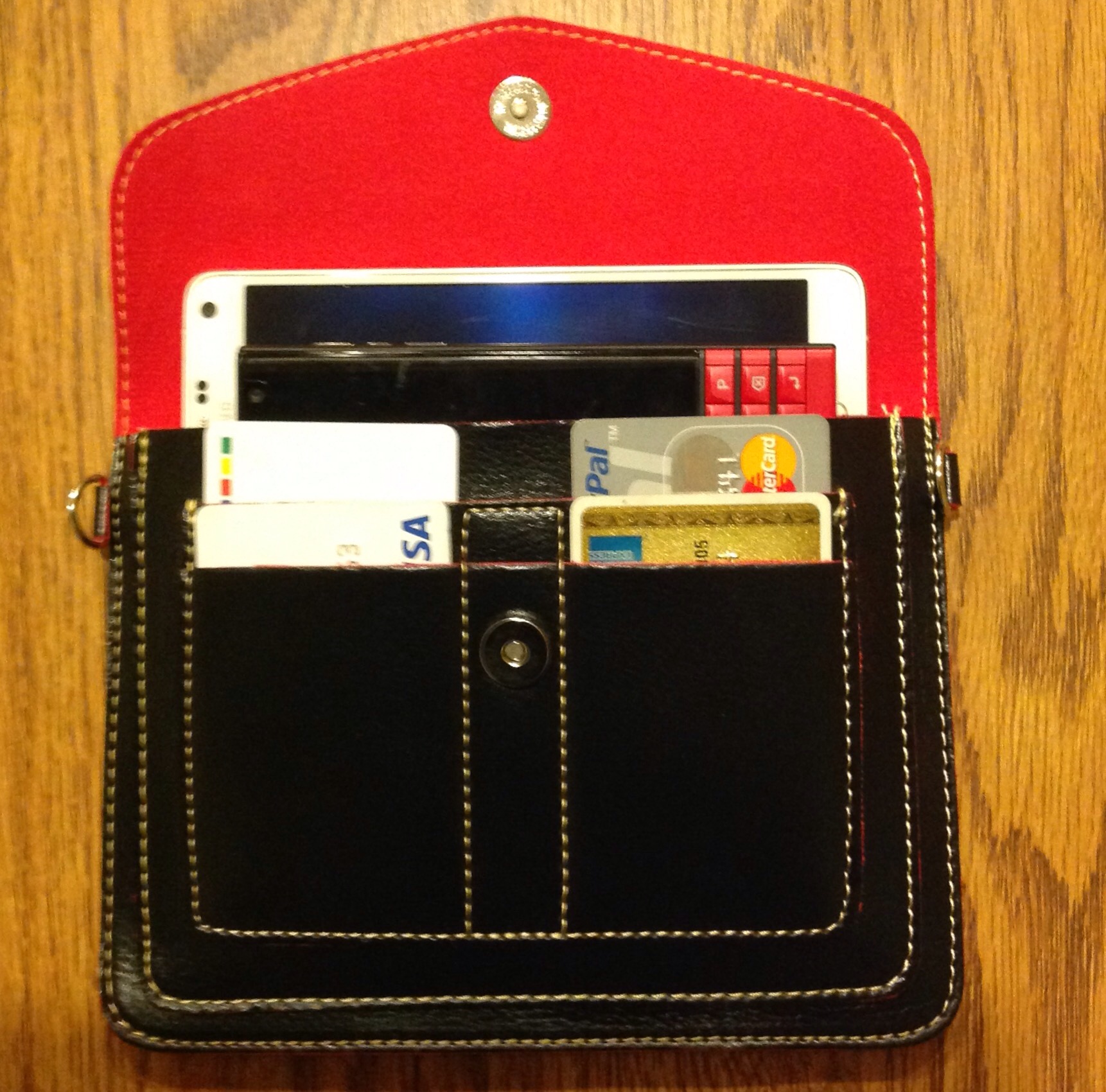 - Its has two big pockets that is good for mobile phone and a slim wallet, the partition become the third pocket so you can put your cash in it or a hotel key.